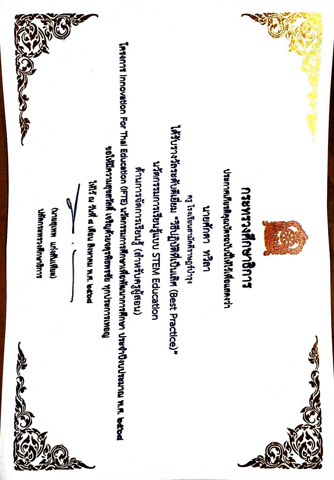 ชื่อผลงาน : ได้รับรางวัลระดับดีเยี่ยม "วิธีปฏิบัติที่เป็นเลิศ (Best Practice)" นวัตกรรมการเรียนรู้แบบ STEM Education ด้านการจัดการเรียนรู้