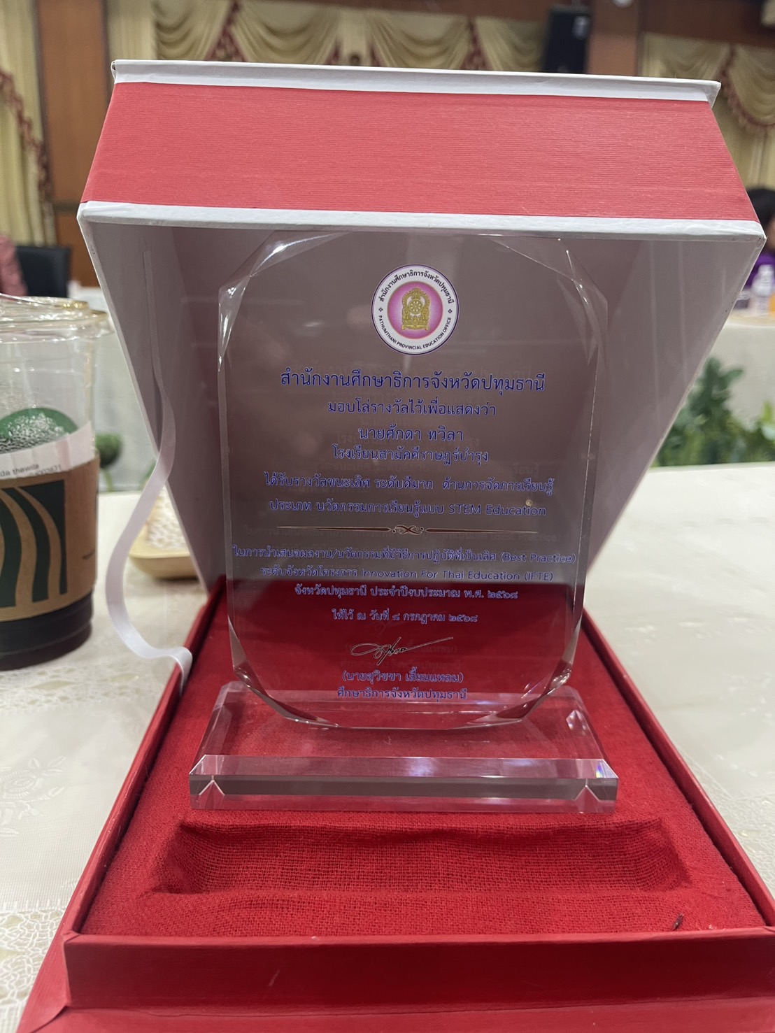 ชื่อผลงาน : รางวัลชนะเลิศ นวัตกรรมการเรียนรู้แบบ STEM Education ระดับจังหวัดปทุมธานี